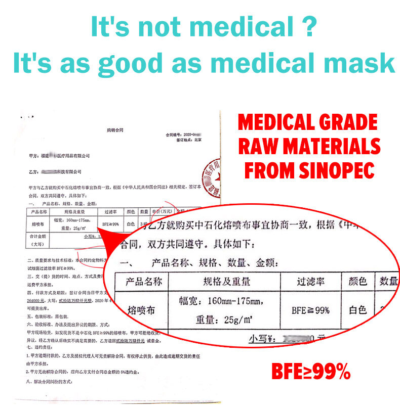 - BFE(Bacterial Filtration Efficiency)≥99%!